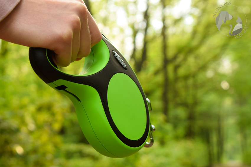 To teraz może garstka moich bardziej rozbudowanych wrażeń. Testowaliśmy smycz Flexi New Comfort taśmową o długości 5m w rozmiarze M, czyli do max. 25 kg, w kolorze zielonym jak na zdjęciach, a zdecydowaliśmy się na nią ze względu na... kolor :)