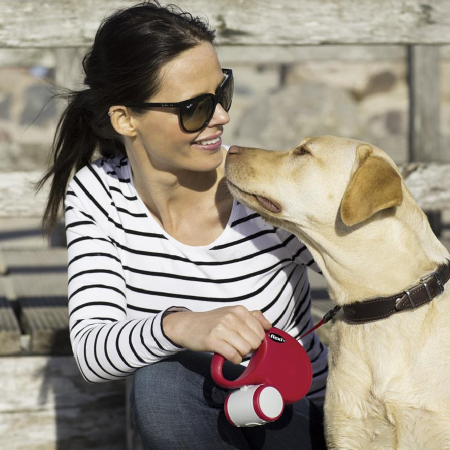 Smycz automatyczna Flexi New Classic w rozmiarze L jest odpowiednia dla psów o wadze do 50 kilogramów.