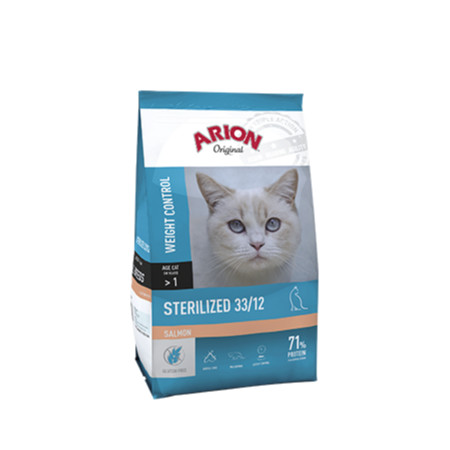 Arion Original Cat Sterilized Salmon Weight Control z łososiem powstała z myślą o kotach sterylizowanych. W pełni zbilansowana, bezglutenowa karma została specjalnie opracowana, aby zapewnić odpowiednią dawkę energii, wysokiej jakości białko oraz dostosowaną ilość błonnika. Wysoki poziom L-karnityny pobudza metabolizm tłuszczu i pomaga utrzymać idealną wagę kota. Nie zawiera kukurydzy, pszenicy ani soi.