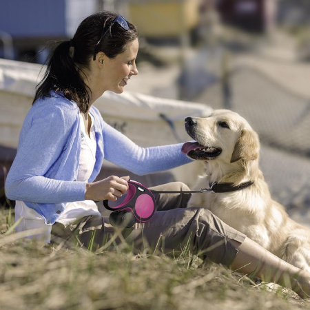 Smycz automatyczna Flexi New Comfort w rozmiarze M jest odpowiednia dla psów o wadze do 25 kilogramów. System regulacji uchwytu pozwala idealnie dopasować uchwyt do wielkości dłoni.