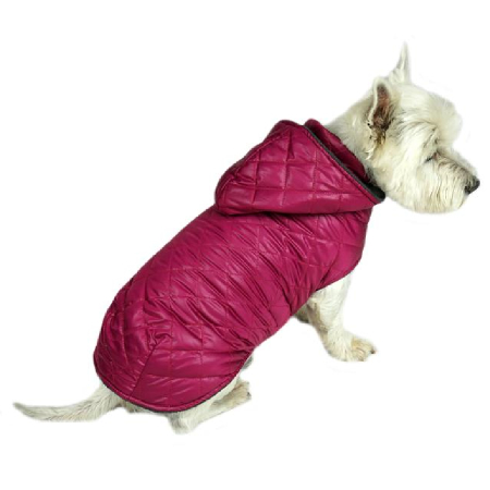 Uniwersalny płaszczyk z kapturem dla psa uszyty z modnej pikowanej tkaniny, od spodu podszyty polarem. Ubranko zapewni pupilowi komfort, ciepło oraz wygodę. Bardzo prosty i szybki sposób zakładania ubranka, dzięki zapięciu na rzep pod brzuchem i szyją. Zewnętrzna, pikowana strona w kolorze amarantowym, od wewnątrz polarek w kolorze szarym.