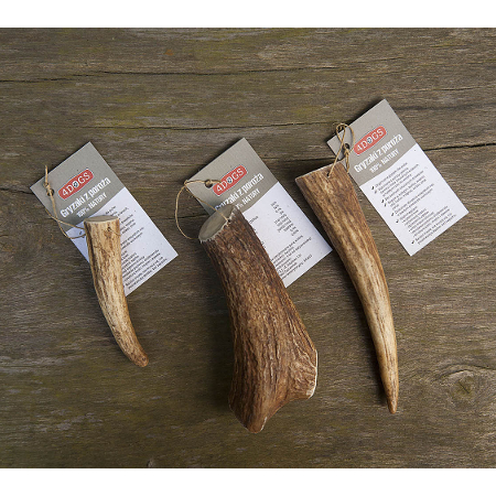 Gryzaki z poroży jeleni to naturalne i zdrowe przysmaki dla psów wszystkich ras. Każdy gryzak został przygotowany ręcznie z poroży jeleni z tzw. zrzutów, czyli poroży gubionych w polskich lasach wiosną przez dziko żyjące jelenie. Przy ich produkcji nie są stosowane żadne sztuczne dodatki, konserwanty, polepszacze smaku czy wyglądu.