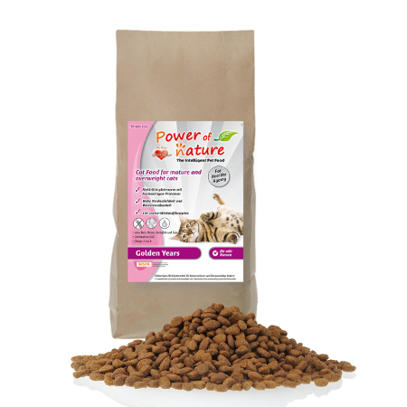 Power of Nature Active Cat Golden Years dedykowana starszym kotom oraz kotom cierpiącym na nadwagę. Kompletne i zrównoważone jedzenie dla Twojego kota, zawierające wszystkie niezbędne składniki odżywcze optymalnie zbilansowane, aby zapewnić długie i szczęśliwe życie.
