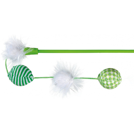 Wędka z piłeczkami do zabawy zapewni kotu, ale także właścicielowi, świetną rozrywkę. Wystarczy pomachać przed kotem wędka żeby ruszył do polowania na piłeczki. Cztery piłeczki zawieszone na sznurku zachęcą go do zabawy. Dodatkowo grzechotka wewnątrz piłki wzbudza zainteresowanie kota. Podczas zabawy z kotem zaspokajasz jego instynkt łowcy, a Twoje ręce są w bezpiecznej odległości.