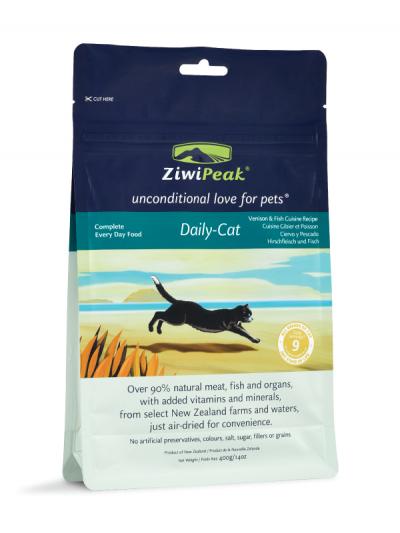 ZIwiPeak ‘Daily Cat’ karma sucha z dziczyzną i rybą to pełnowartościowa, idealnie zbilansowana prawdziwie mięsna karma, biologicznie odpowiednia dla kotów w każdym wieku, każdej rasy i wielkości. Duża zawartość dziczyzny (78%) - doskonałego, odżywczego i hipoalergicznego źródła wysokiej jakości białka oraz bogatego w witaminy, minerały i kwasy tłuszczowe (EPA, DHA) mięsa miruny (12%) sprawiają, że karmę cechuje doskonała przyswajalność (95%) i dobroczynne właściwości zdrowotne. Dzięki zawartości nowozelandzkich małży zielonych dodatkowo korzystnie wpływa na kondycję stawów. Idealnie dostosowana do systemu trawiennego kota jest łatwo trawiona i doskonale przyswajalna. Ze względu na doskonałą przyswajalność, dzienna zalecana porcja karmy ZiwiPeak jest znacznie mniejsza niż w przypadku innych karm konwencjonalnych. Wyprodukowana w Nowej Zelandii z najczystszych nowozelandzkich składników naturalnych. Twój kot pokocha jej smak!