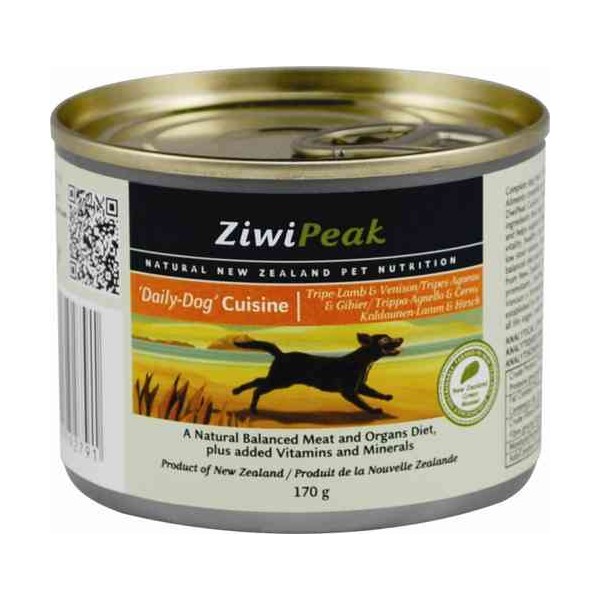 ZiwiPeak ‘Daily Dog’ karma mokra z żołądkami jagnięcymi, mięsem jagnięcym i dziczyzną to pełnowartościowa, idealnie zbilansowana prawdziwie mięsna karma, biologicznie odpowiednia dla psów w każdym wieku, każdej rasy i wielkości. Dzięki zawartości nowozelandzkich małży zielonych dodatkowo korzystnie wpływa na kondycję stawów. Idealnie dostosowana do systemu trawiennego psa jest łatwo trawiona i doskonale przyswajalna. Wyprodukowana w Nowej Zelandii i tylko z nowozelandzkich naturalnych i świeżych składników. Twój pies pokocha jej smak!