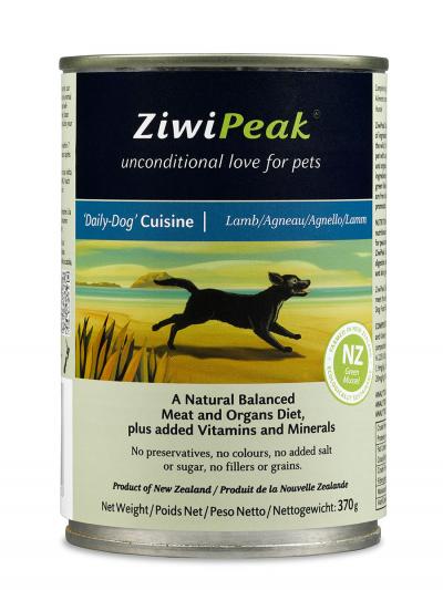 ZiwiPeak ‘Daily Dog’ karma mokra z jagnięciną to pełnowartościowa, idealnie zbilansowana prawdziwie mięsna karma, biologicznie odpowiednia dla psów w każdym wieku, każdej rasy i wielkości. Dzięki zawartości nowozelandzkich małży zielonych dodatkowo korzystnie wpływa na kondycję stawów. Idealnie dostosowana do systemu trawiennego psa jest łatwo trawiona i doskonale przyswajalna. Wyprodukowana w Nowej Zelandii i tylko z nowozelandzkich naturalnych i świeżych składników. Twój pies pokocha jej smak!