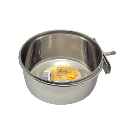 Miska dla ptaków z uchwytem zaciskowym do przymocowania w klatce. Miskę łatwo utrzymać w czystości, dzięki temu, że można ją łatwo wyjąć z obręczy mocującej.