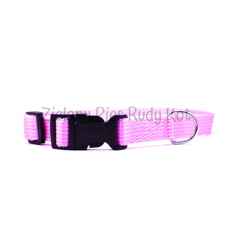 Obroża dla psa z wytrzymałej taśmy nylonowej. Kolor obroży - jasny róż idealnie pasuje psiej płci pięknej.