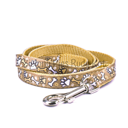 Smycz dla psa z wytrzymałej taśmy nylonowej z motywem łapek i kostek. Stanowi idealne dopełnienie do obroży z tej samej serii.