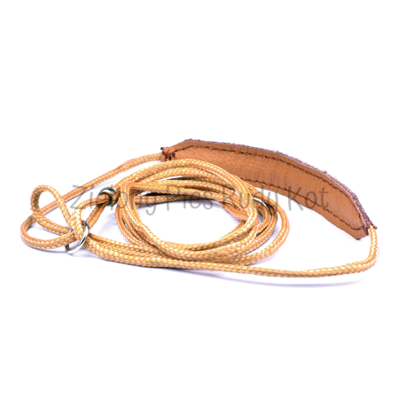 Profesjonalna smycz ringowa niezbędna na wystawach. Wytrzymała linka ze skórzaną wstawką pod gardłem dla większej wygody psa.