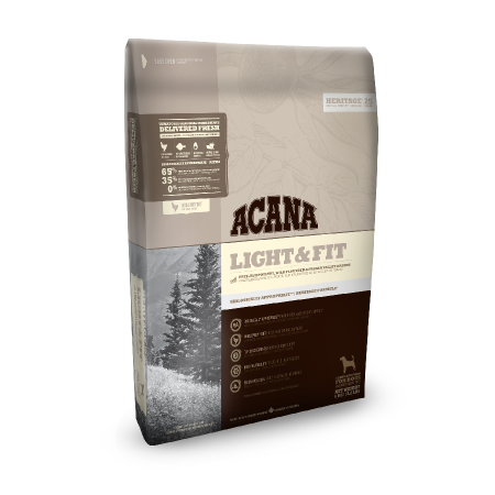 Acana Light & Fit dedykowana jest dorosłym psom powyżej 1 roku życia. Dla psów z nadwagą korzystna jest dieta bogata w białko, aby wesprzeć masę mięśniową, lecz o ograniczonej zawartości węglowodanów, których nadmiar może przyczynić się do powstawania nadmiaru tkanki tłuszczowej. Dlatego Acana Light & Fit jest przepełniona mięsem.