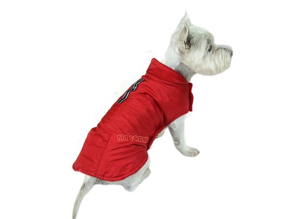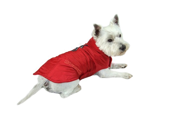 Uniwersalne ubranko z nieprzemakalnego ortalionu doskonale chroni przed zimnem, wiatrem i deszczem. Wszyty ściągacz wokół szyi pozwala na dokładne dopasowanie ubranka do pupila. Płaszczyk od spodu podszyty polarem, zapinany na  rzep. Metalowe kółko na pleckach umożliwia zapięcie smyczy.
