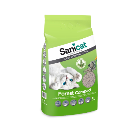 Żwirek Sanicat Forest Compact o zapachu lasu to maksymalna higiena, wysoka chłonność i proste utrzymanie czystości.