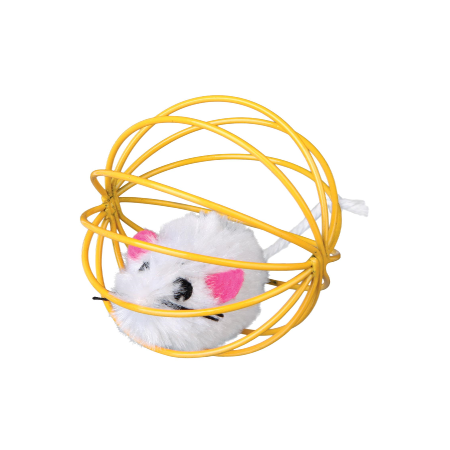 Myszka pluszowa w drucianej kuli do zabawy dla kota.