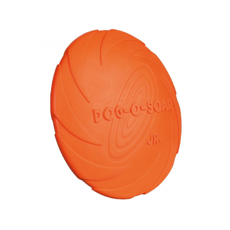 Rzuty dyskiem sprawią wiele radości i zapewnią dobrą zabawę zarówno Tobie, jak i psu. Frisbee jest dobrą formą aktywności dla wszystkich zdrowych psów. Zabawa dyskiem to trening dla Twojego psa nie tylko fizyczny ale również psychiczny, wzmacnia relację pomiędzy psem i właścicielem. Dysk z kauczuku jest odpowiedni dla wrażliwych, młodych psów, pamiętaj jednak, jeśli pies nadal rośnie zaleca się ćwiczyć turlanie i aportowanie, bez skoków.