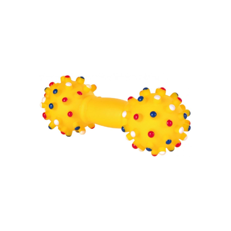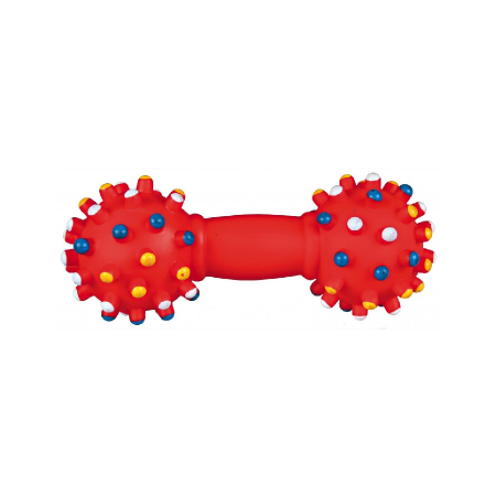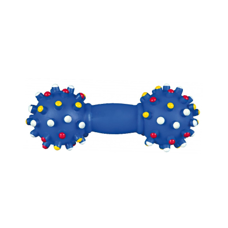 Hantelek dla psa dzięki wydającym dźwiękom sprawi wiele radości psu, a wypustki masują dziąsła psa podczas zabawy.