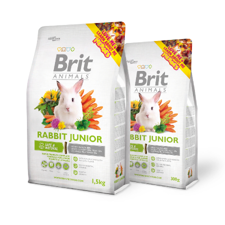 Brit Animals Rabbit Junior Complete to pełnoporcjowa karma klasy super premium dla młodych królików (4-20 tygodni). Kompletny skład witamin i substancji odżywczych zapewnia bezpieczne żywienie i prawidłowy rozwój. Formuła karmy działa korzystnie na uzębienie i futro oraz wspomaga trawienie. Wyższa zawartość białka (16%) i tłuszczy (3%) gwarantuje zdrowy wzrost. Dodatek siemienia lnianego - źródła nienasyconych kwasów tłuszczowych Omega-3 wspiera układ nerwowy i sprawia, że sierść jest lśniąca. Zioła i lucerna stanowią 60% karmy, zboże i siemię lniane 22%, owoce 12%, warzywa 4%, witaminy 2%.