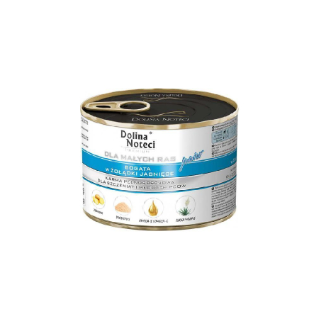 Dolina Noteci Premium Junior to pełnoporcjowa karma dla szczeniąt i młodych psów małych ras bogata w żołądki jagnięce.
