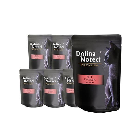 Karma pełnoporcjowa dla dorosłych kotów wszystkich ras – filet z łososia w sosie. Karma dostępna w korzystnym pakiecie 12x85g.